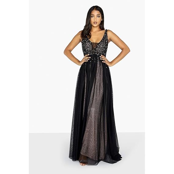 If you want to benefit from this improved service please opt-in. Aug 22 2018 - A black maxi dress with heavily embellished v-neck bodice open back and layered mesh skirt. Little Mistress Tall tulle maxi dress with lace detail-Pink.